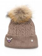 Шапка вязаная косами и с отворотом Vera Victoria Vito – роскошный аксессуар, который легко подчеркнет изысканный стиль своей обладательницы. Модель декорирована брошью "жук" с фиолетовыми искрящимися кристаллами Swarovski. Состав; 70% шерсть, 30% вискоза. Помпон из меха енота отстегивается, что очень удобно при уходе за вещью.