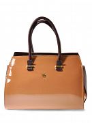 Исполненная грации и изысканности сумка изготовлена из лакированной эко-кожи. Выполненная в бежевой палитре, она передает очарование и восторг. Удобные ручки на ремешках с пряжками. Закрывается сумка на молнию. С такой спутницей вы подчеркнёте свой хороший вкус. Внутри два отделения, разделительный карман на молнии, кармашки для мелочей. Карман на молнии с внешней и внутренней стороны. В комплекте плечевой ремень.